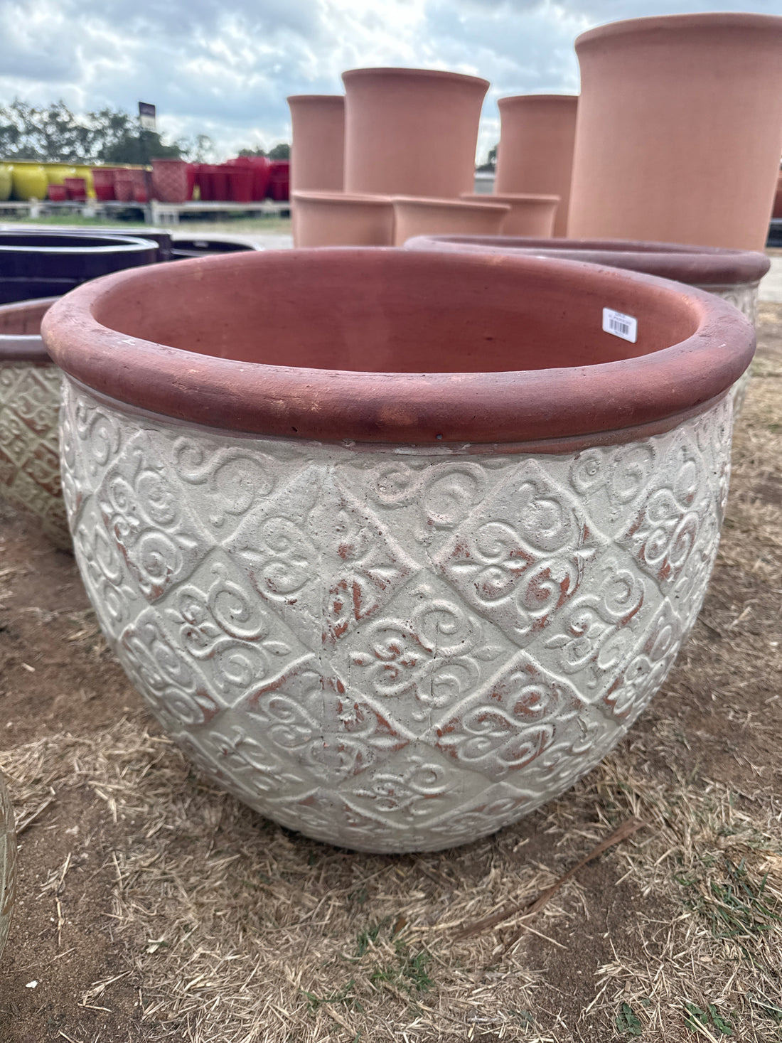 Rustic White Round Lipped Planter 24"